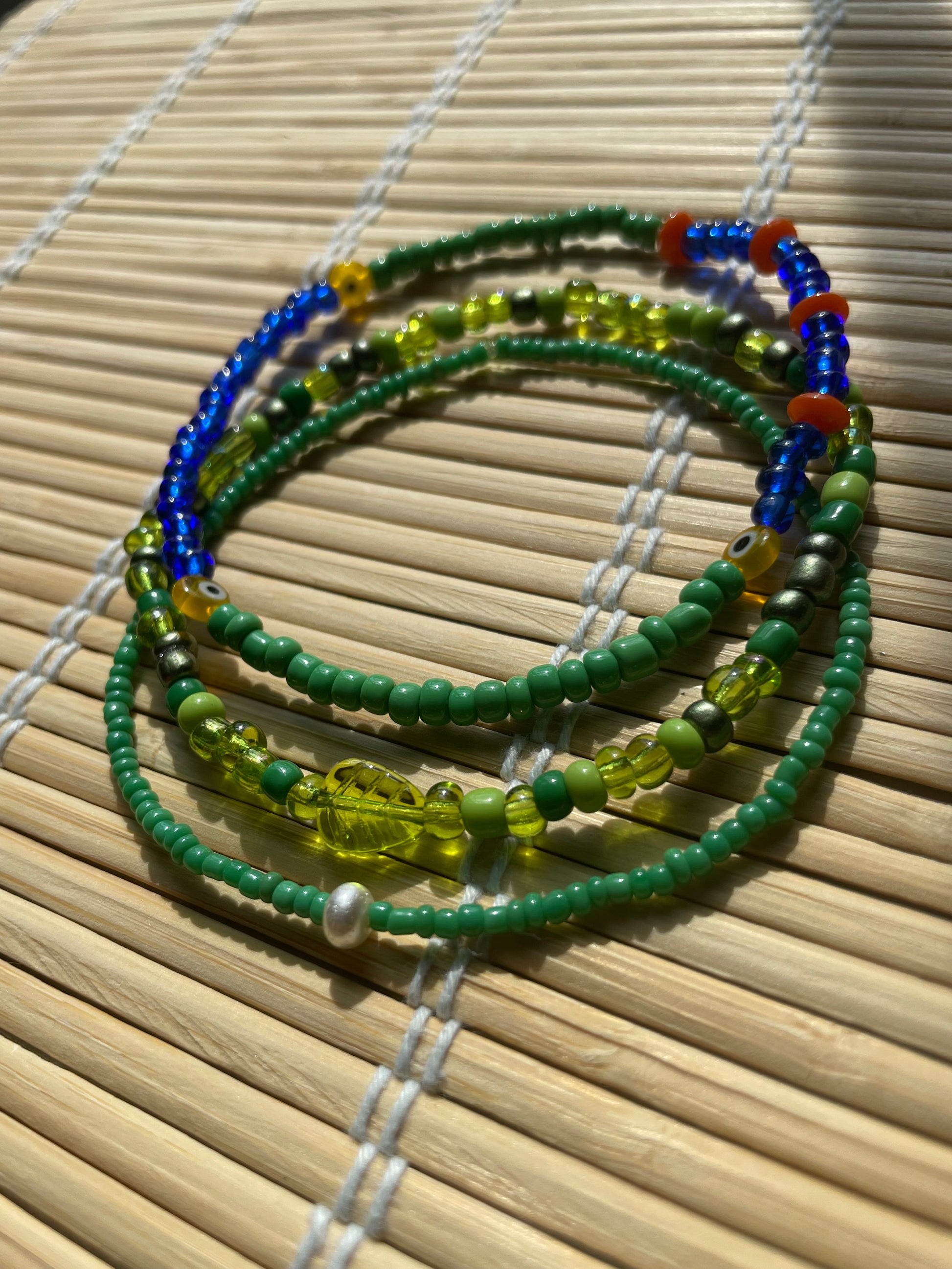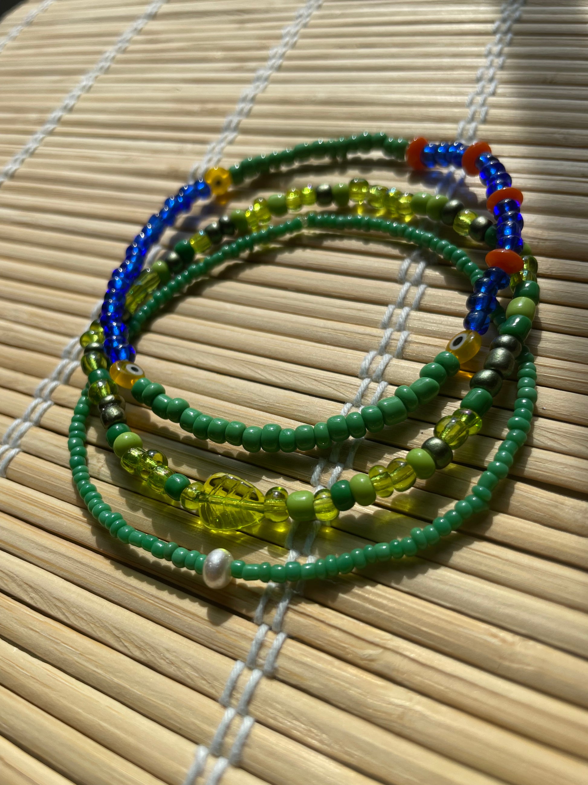 A little mystery, a lot of beauty! This set of 3 hand-selected beaded anklets is carefully curated to bring you a unique mix of colors, textures, and natural elements. Each set is different, featuring a combination of high-quality beads, semi-precious stones, freshwater pearls, and natural shells for a one-of-a-kind look.