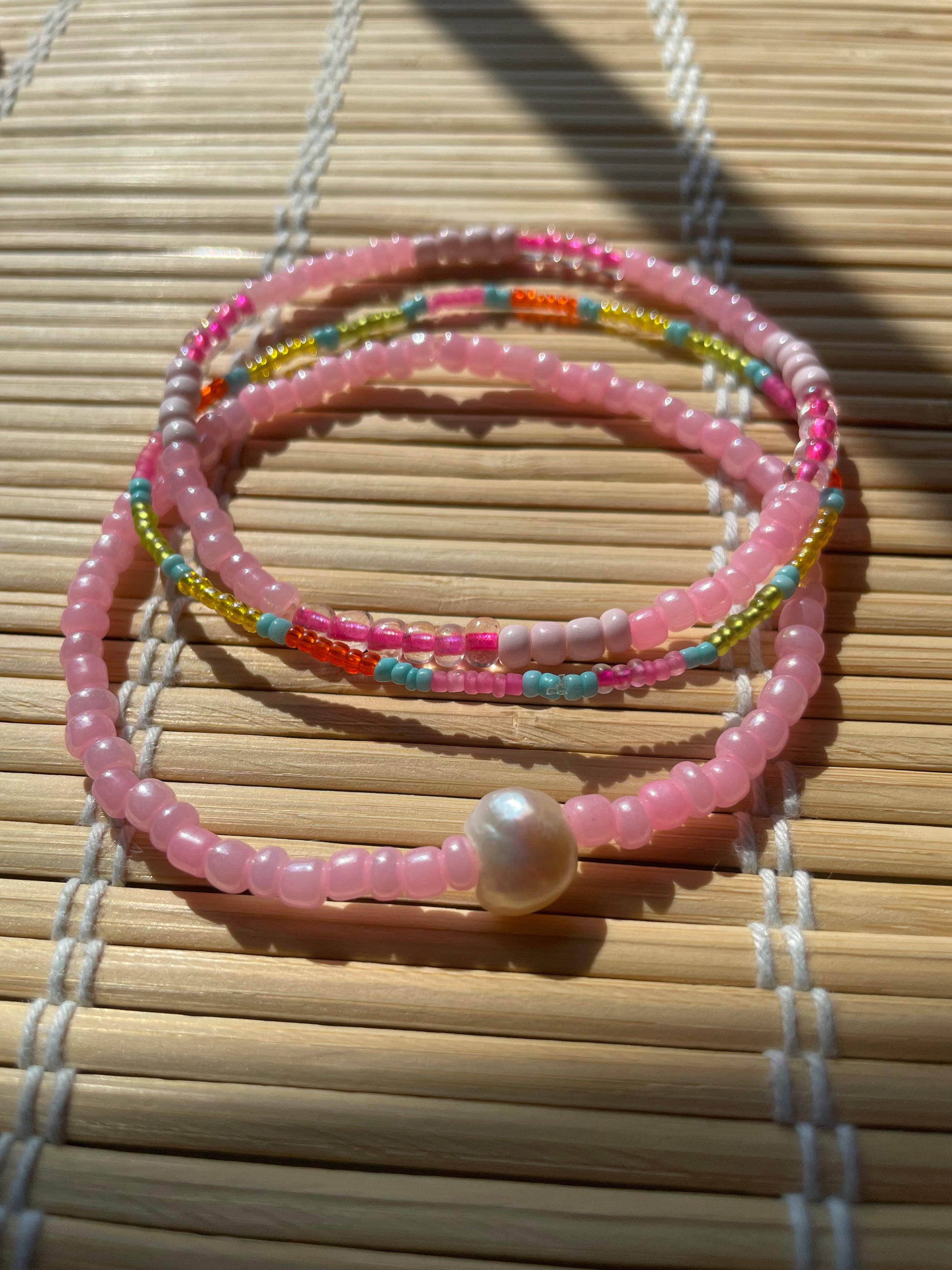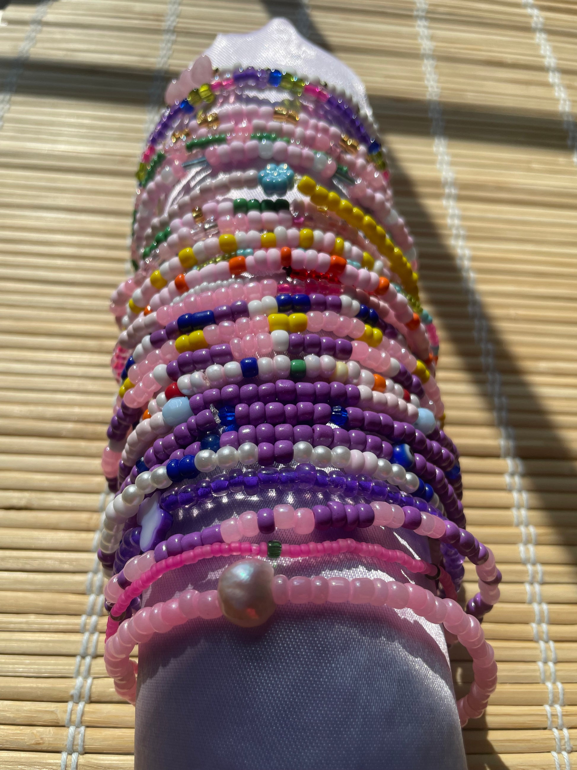 A little mystery, a lot of beauty! This set of 3 hand-selected beaded anklets is carefully curated to bring you a unique mix of colors, textures, and natural elements. Each set is different, featuring a combination of high-quality beads, semi-precious stones, freshwater pearls, and natural shells for a one-of-a-kind look.