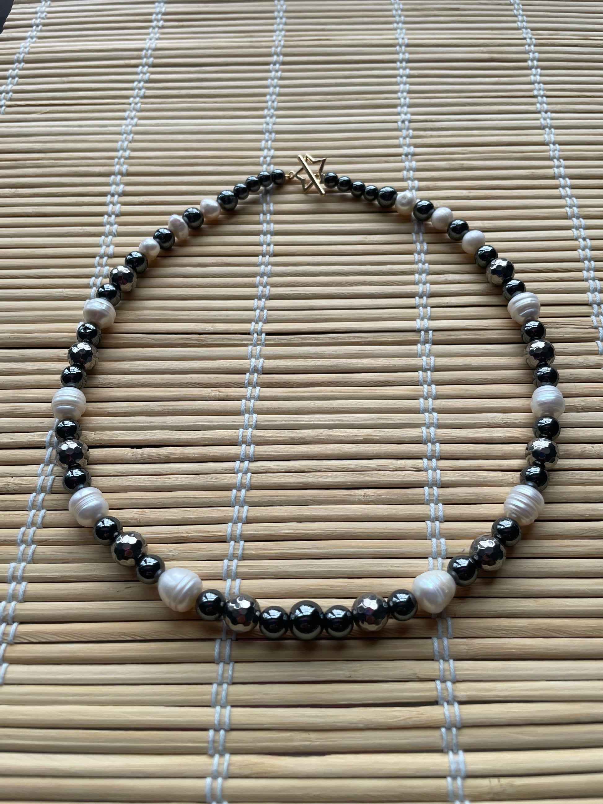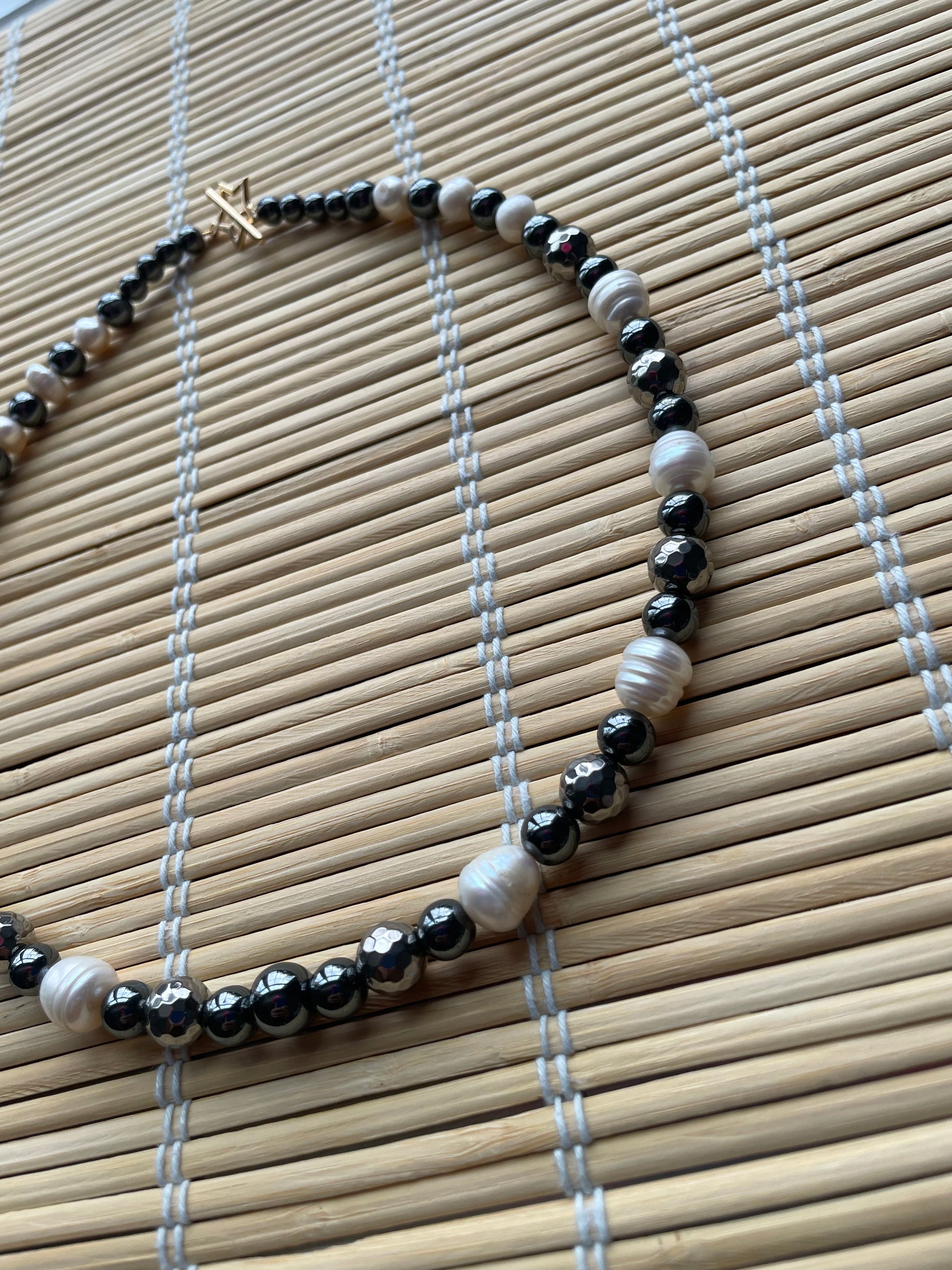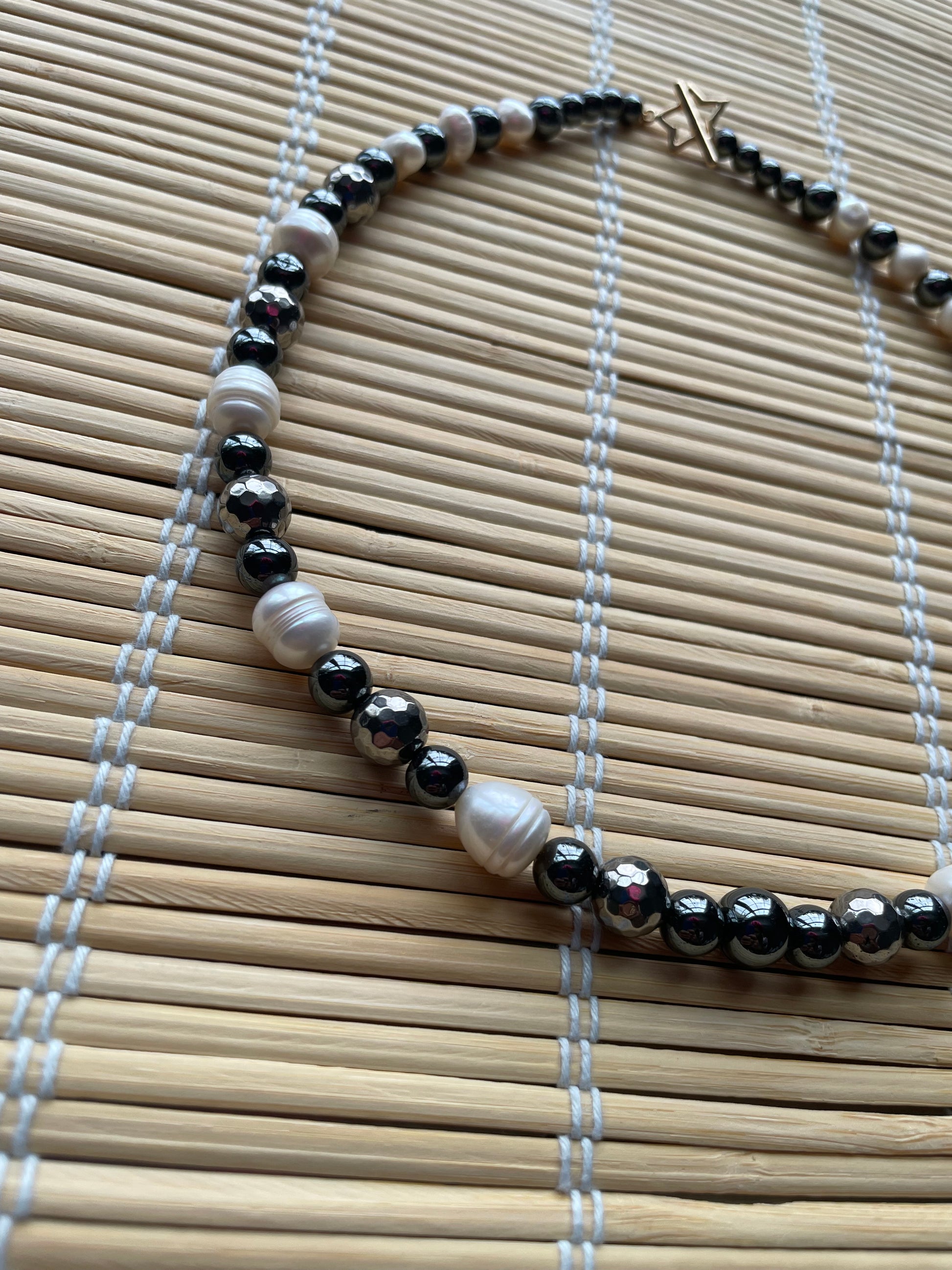 Beautifully made with: Freshwater pearls, hematite,