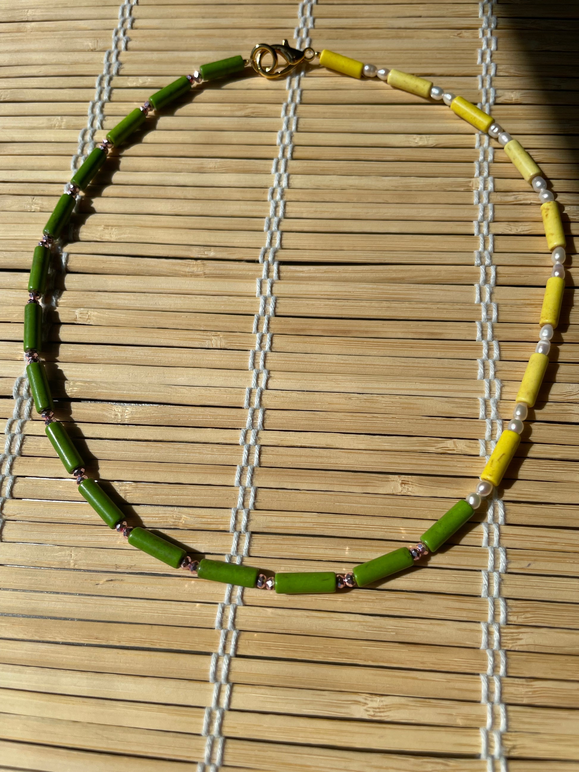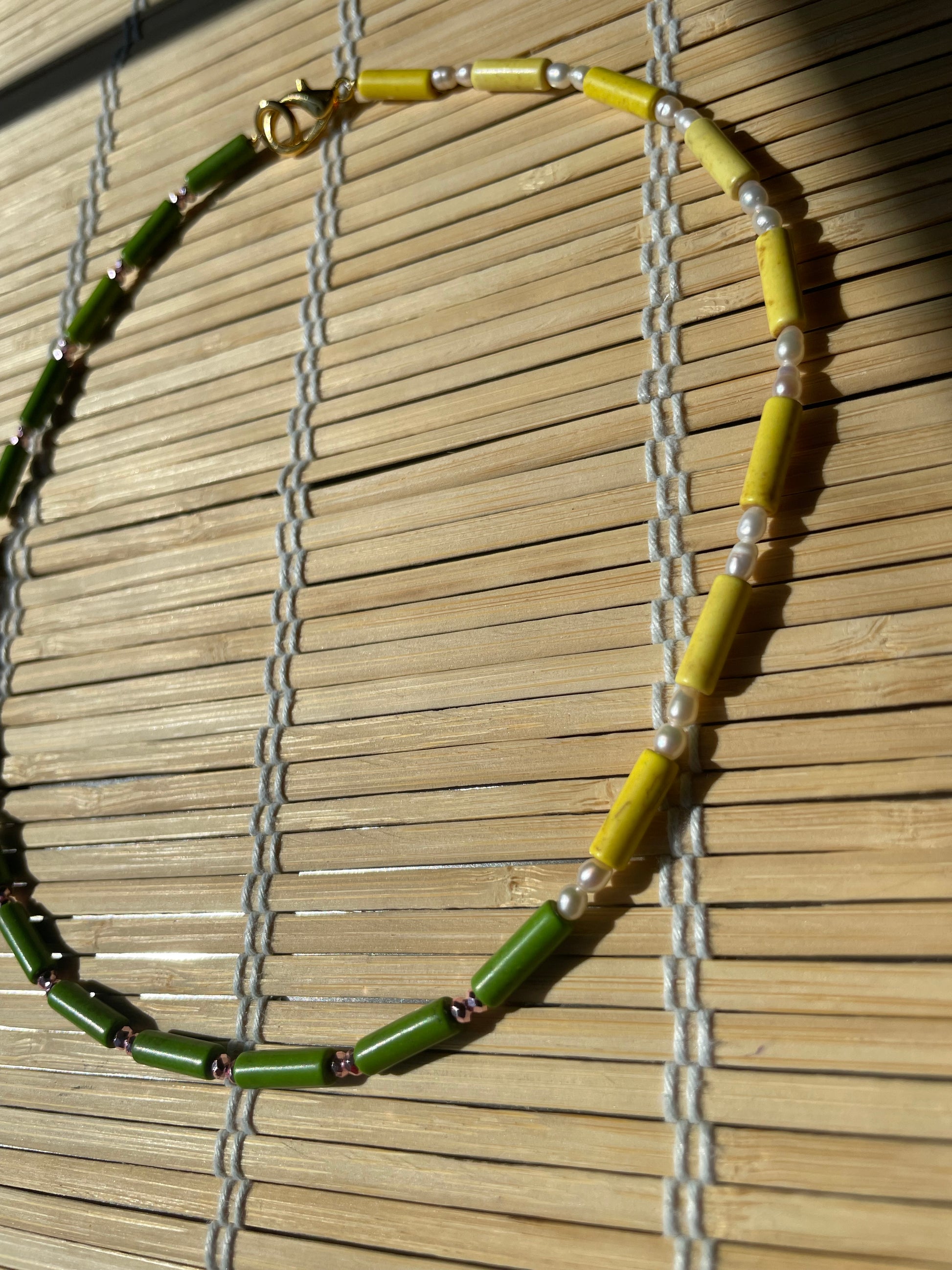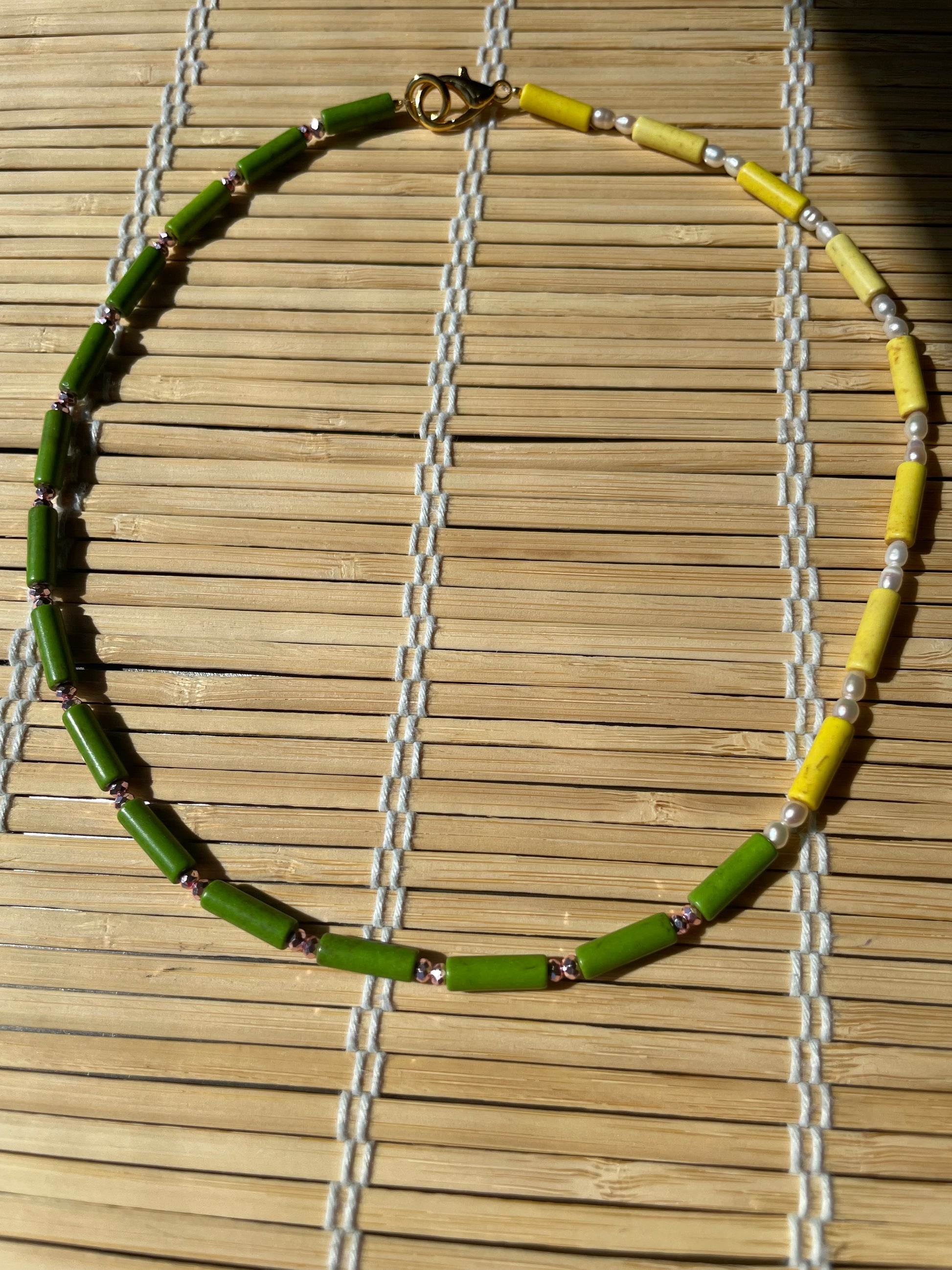 Materials used: Yellow and Green bone beads,Baby fresh water pearls,